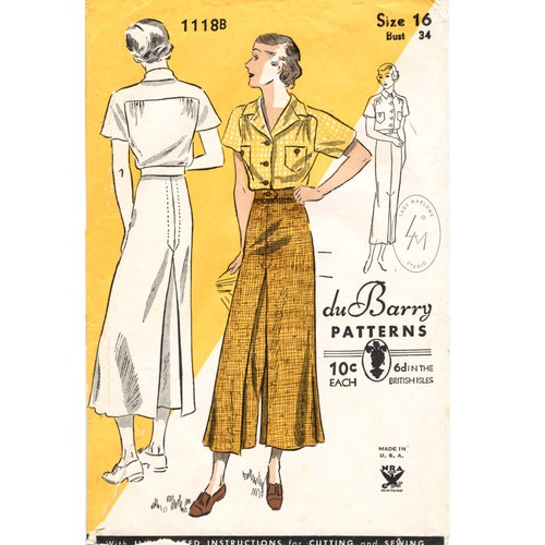 Vintage Sewing Pattern 1930s 1940s Jumpsuit Palazzo Pants Wide Etsy